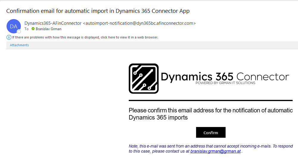 You confirm the email address with the click on the button "Confirm"If the email address is confirmed (a blue icon next to the email address in the detail mask) you will be notified after each automatic import.